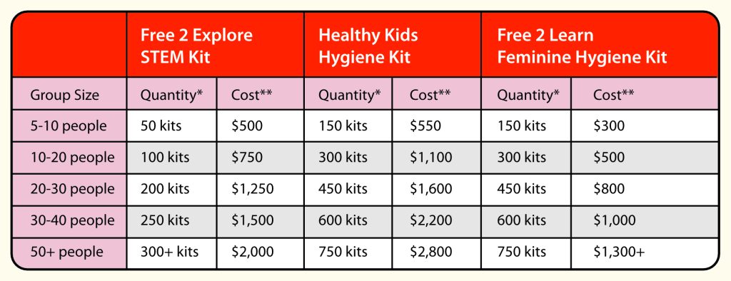 Feminine hygiene kits for girls